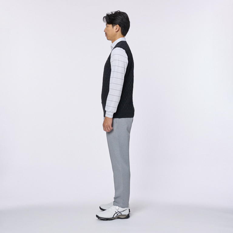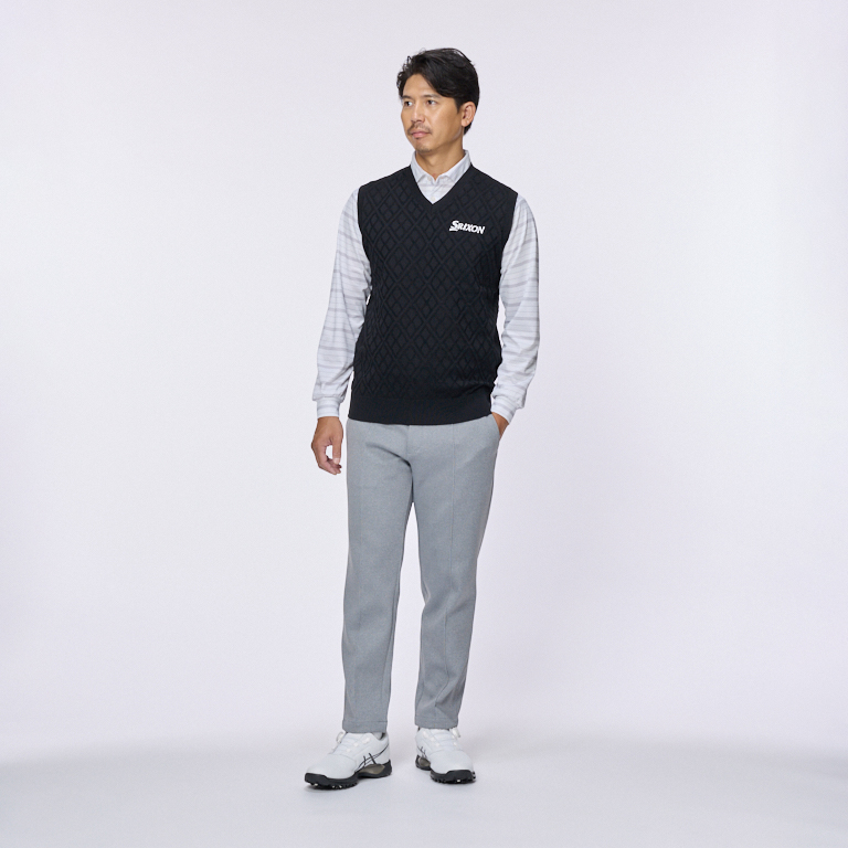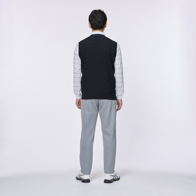 イージーケア性に優れご家庭での洗濯も可能なポリエステル素材を使用しています。製品の編地はスタイリッシュにアレンジしたアーガイルパターンを採用しています。